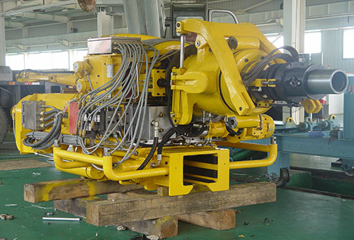 頂部驅(qū)動鉆井裝置,可以直接從井架空間上部直接旋轉(zhuǎn)鉆柱,并沿井架內(nèi)專用導軌向下送進,完成鉆柱旋轉(zhuǎn)鉆進、循環(huán)鉆井液、接單根、上卸扣和倒劃眼等多種鉆井操作的鉆井裝備。頂驅(qū)減速機為頂驅(qū)裝置中的主要傳動部件,實現(xiàn)從電機到鉆柱力矩與速度的傳遞和鉆井鉆具的提升