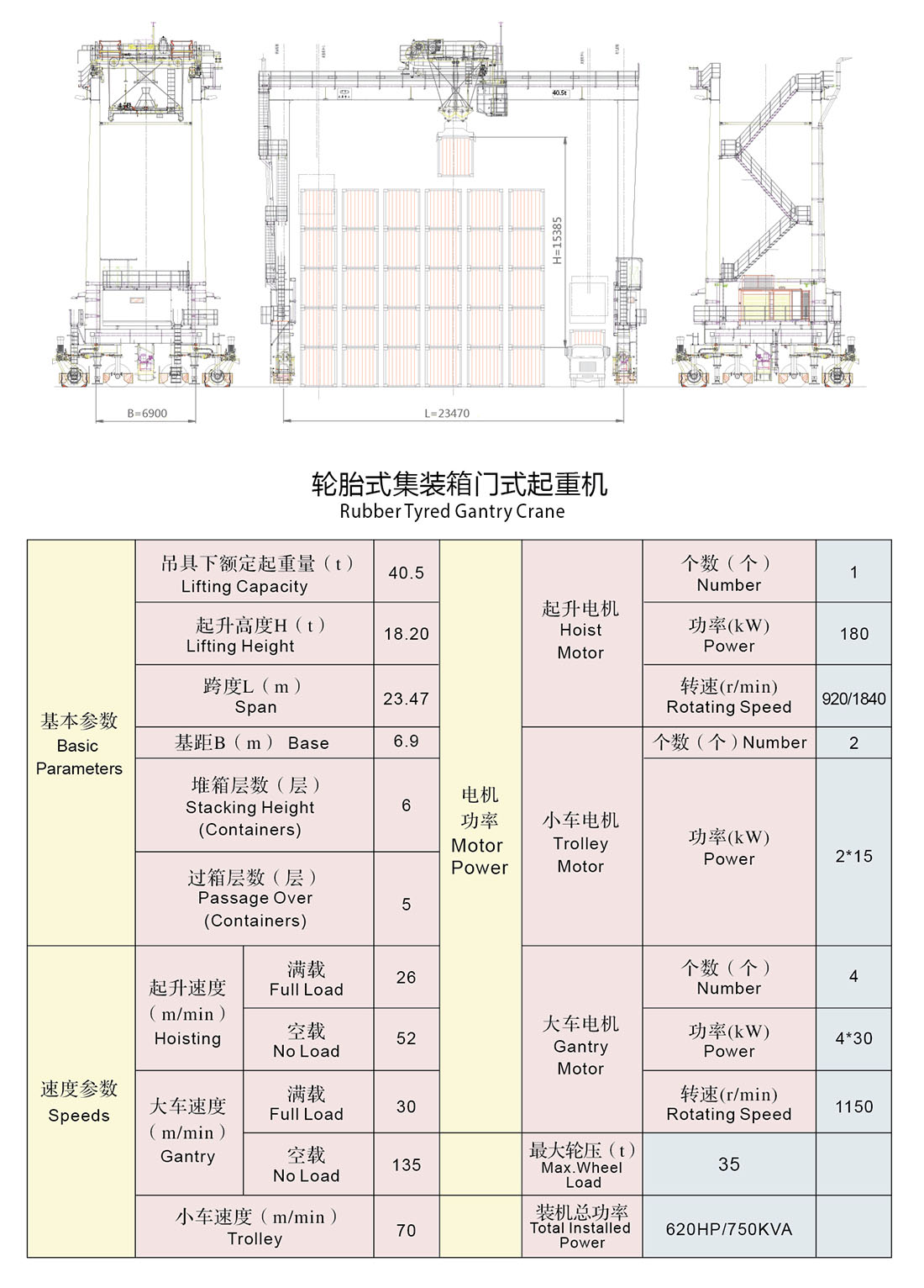 集裝箱堆場專用起重機(jī),適用于集裝箱碼頭堆場或集裝箱貨場進(jìn)行堆碼作業(yè),包括碼頭前沿集裝箱堆場,鐵路轉(zhuǎn)運集裝箱堆場、公路轉(zhuǎn)運集裝箱堆場