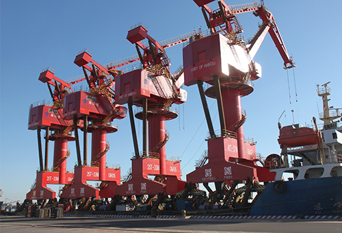 門座起重機(jī)是裝在沿地面軌道行走的門型底座上的全回轉(zhuǎn)臂架起重機(jī),是碼頭前沿的通用起重機(jī)之一??梢酝ㄟ^滾裝發(fā)運(yùn)的方式成套向客戶提供所需的門座起重機(jī),包括:四連桿門座起重機(jī)、單臂架門座起重機(jī)、固定的帶斗門機(jī)。