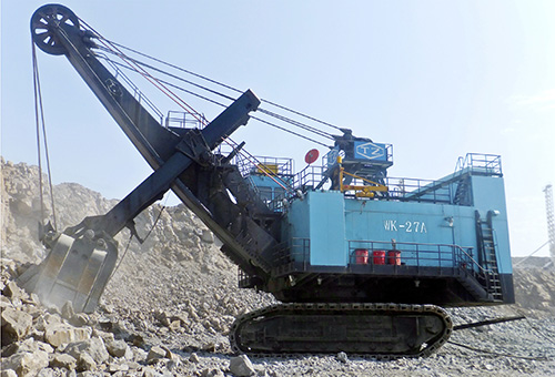 WK-27A礦用挖掘機(jī)與154-292t礦用汽車配套使用,可適用于千萬噸級(jí)大型露天煤礦、鐵礦及有色金屬礦山的剝離和采裝作業(yè)