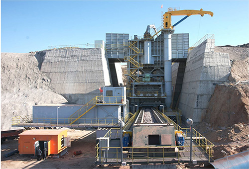 用于千萬噸級及以上金屬礦山的礦石及巖石的初級破碎,適用于運輸汽車——半移動破碎站——膠帶機運輸工藝