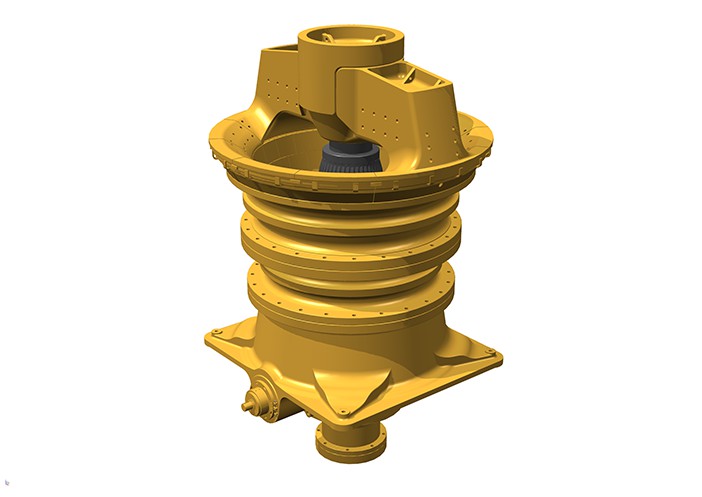 旋回式破碎機用于大型露天金屬礦山礦石或巖石的初級破碎,將爆破或挖掘后的大塊物料破碎成滿足膠帶機運輸?shù)牧6?,處理能?500t/h-10000t/h。