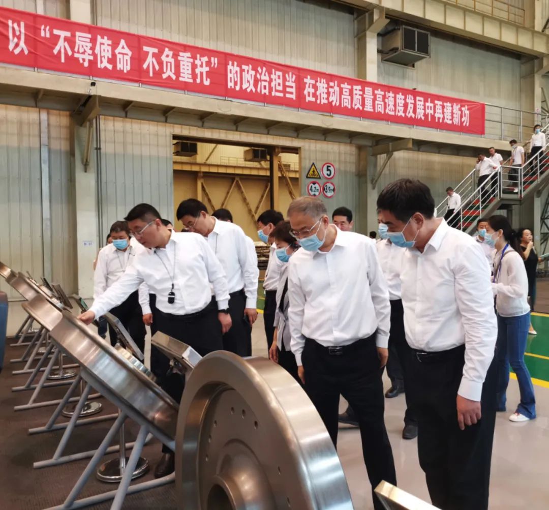 近日,太原市工業(yè)高質(zhì)量發(fā)展大會召開。會前,太原市委副書記、市長張新偉及市委、市政府一行,相關(guān)企業(yè)、高校等150名參會領(lǐng)導(dǎo)前來太重,對太重高端裝備制造產(chǎn)業(yè)發(fā)展情況進行深入了解,實地觀摩了太原重工軌道交通設(shè)備有限公司高速列車關(guān)鍵零部件國產(chǎn)化項目車輪生產(chǎn)線現(xiàn)場。集團公司黨委書記、董事長韓珍堂陪同參觀。