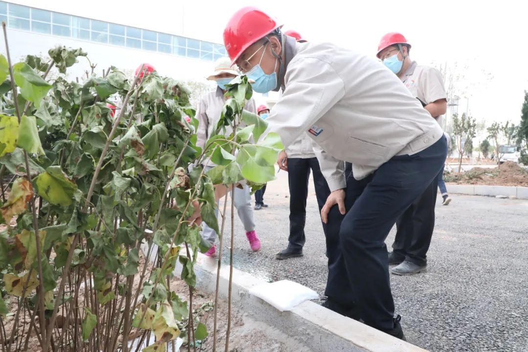 當(dāng)前,廠區(qū)綠化正按照先喬木后灌木再地被的順序超常組織,已有三條道路基本完成主要樹種種植。韓珍堂詳細(xì)了解栽種樹木種類布局,指出要合理規(guī)劃,注重細(xì)節(jié),不僅要打造品種豐富、四季多彩的園區(qū)景觀,也要注重園區(qū)圍墻外環(huán)境治理,營(yíng)造優(yōu)美舒適的辦公環(huán)境。要全速推進(jìn)項(xiàng)目建設(shè),確保各個(gè)環(huán)節(jié)銜接有序,在做好道路清理工作的基礎(chǔ)上加快推進(jìn)綠化工程進(jìn)度,確保在最佳時(shí)節(jié)完成樹木種植工作。
