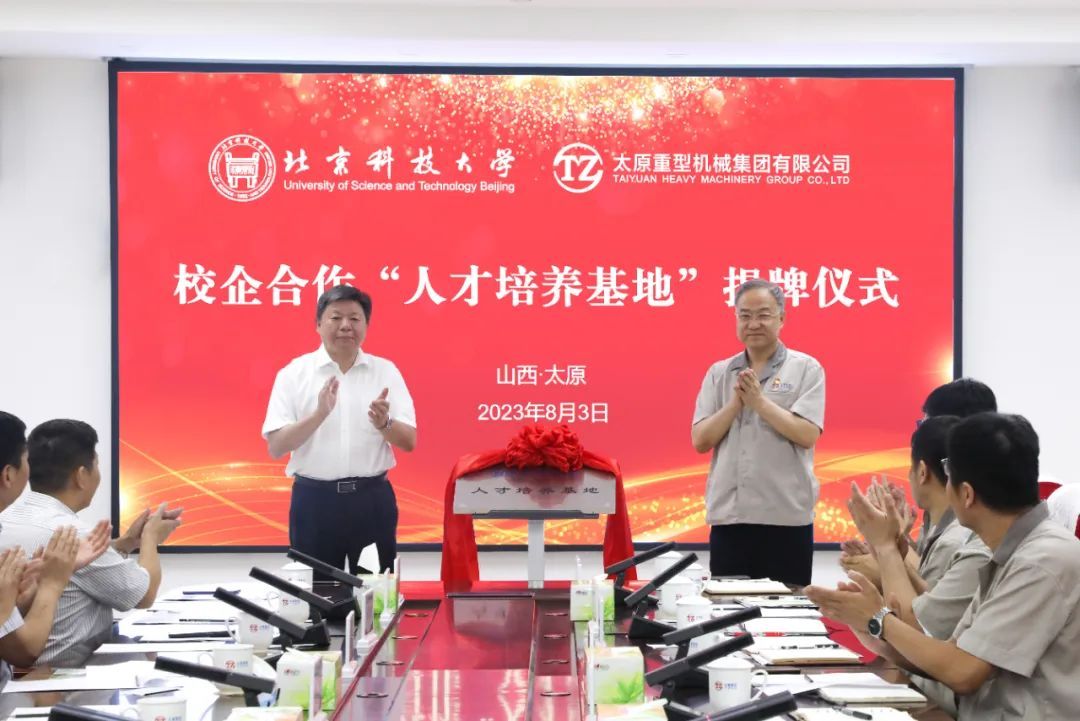 8月3日,太重集團和北京科技大學校企合作儀式在太重舉行。集團公司黨委書記、董事長韓珍堂與北京科技大學校長楊仁樹共同揭牌,并圍繞人才培養(yǎng)、校企合作、產學研攻關等方面開展座談交流。