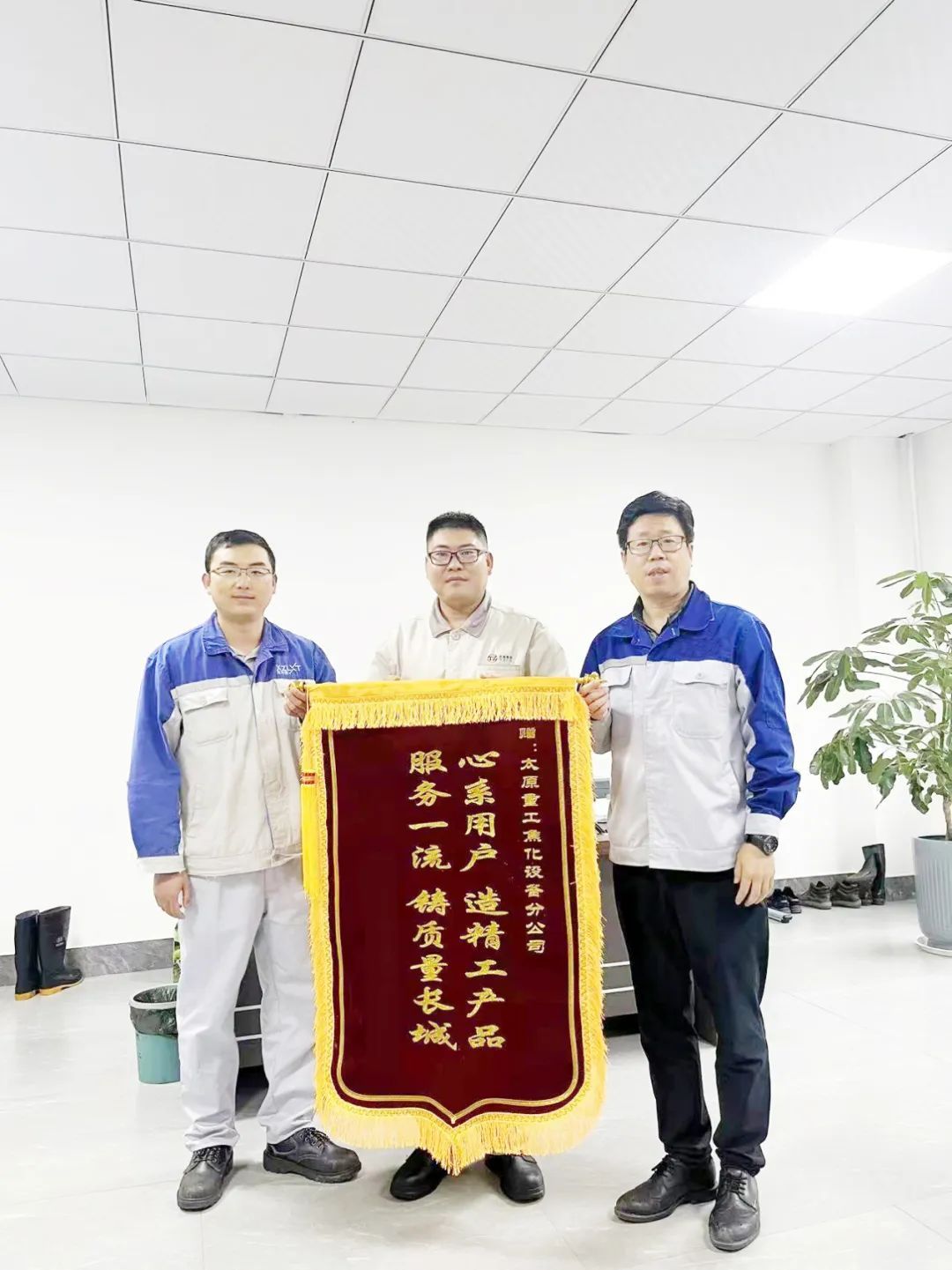 在干勁滿滿沖刺四季度的同時(shí),我們也收獲了暖意滿滿的感謝?!靶南涤脩簦炀ぎa(chǎn)品;服務(wù)一流,鑄質(zhì)量長(zhǎng)城”“技術(shù)精益求精 服務(wù)盡心盡責(zé)”,近日,焦化分公司先后收到來(lái)自江蘇徐州和山西長(zhǎng)治兩家用戶的錦旗,每一面錦旗背后,都展現(xiàn)著用戶對(duì)公司盡職盡責(zé)、專業(yè)服務(wù)精神的高度贊揚(yáng)和誠(chéng)摯感謝,更是對(duì)公司持續(xù)完善用戶服務(wù)體系,全面提升用戶服務(wù)質(zhì)量的最好肯定。