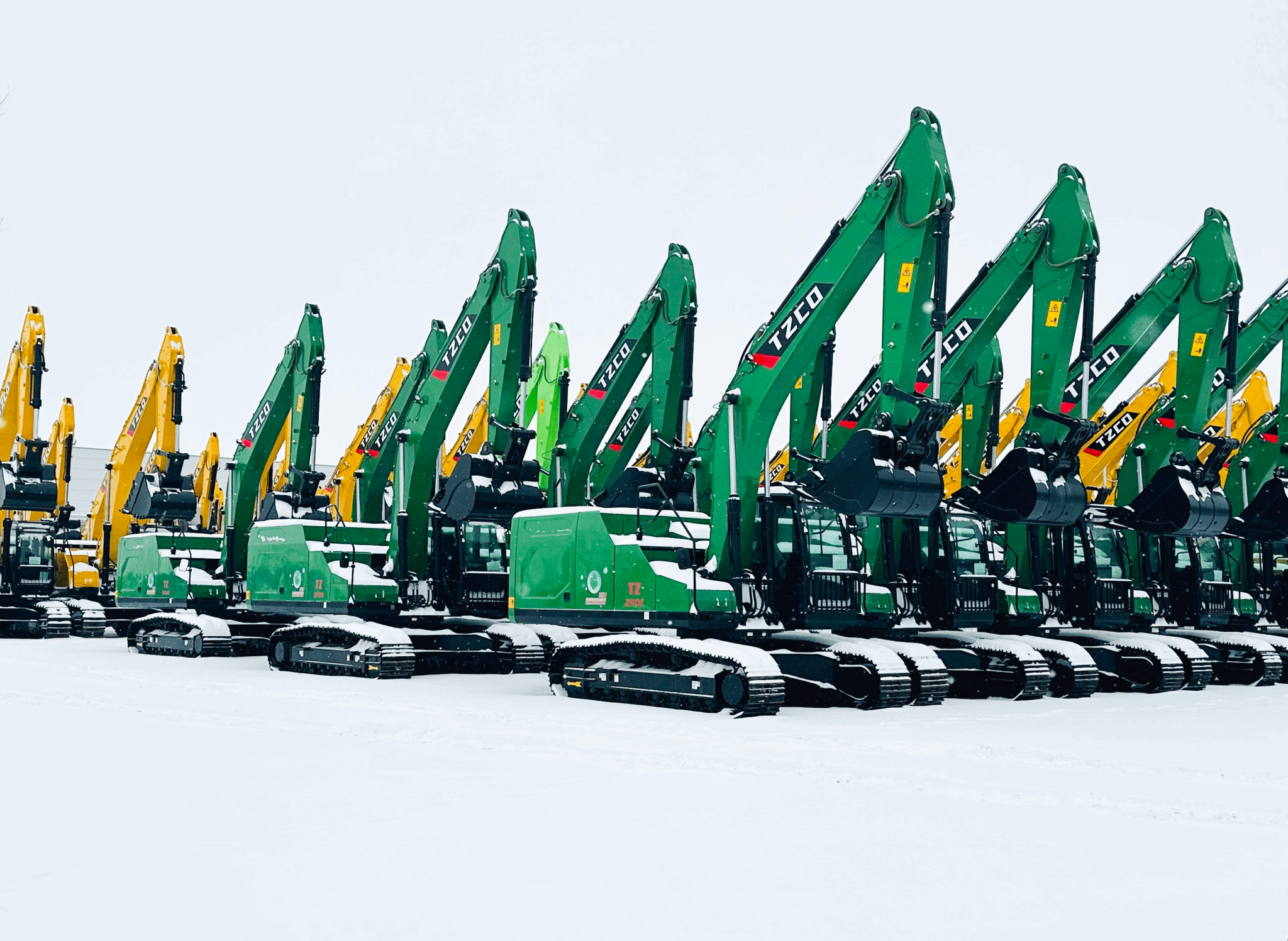 在智能高端液壓挖掘機產(chǎn)業(yè)園區(qū),一抹綠色雪里開,給太重挖機戴上了漂亮的“銀飾”。