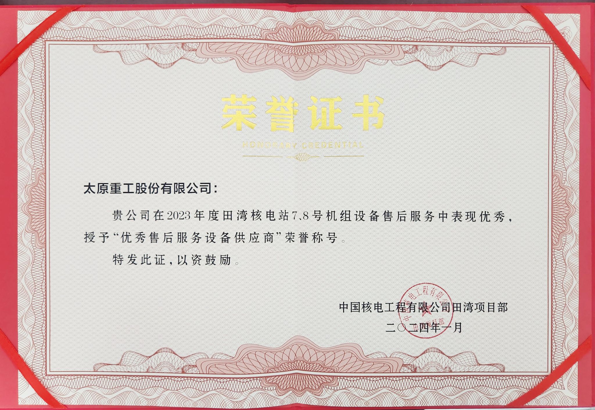 新春伊始,喜訊傳來(lái)。太重被中核集團(tuán)田灣核電站授予“田灣核電7、8號(hào)機(jī)組2023年度優(yōu)秀售后服務(wù)供應(yīng)商”稱(chēng)號(hào),體現(xiàn)了用戶(hù)對(duì)公司產(chǎn)品和服務(wù)的充分認(rèn)可。