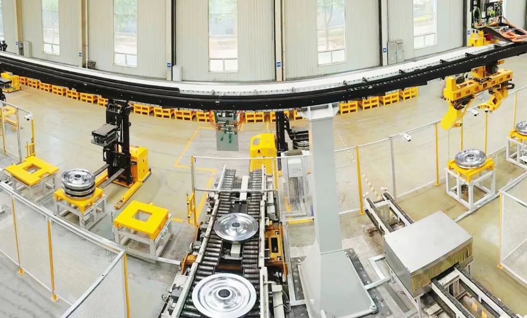 軌道車輪廠二線,一片片車輪搭載著5G網(wǎng)絡(luò)和AGV小車完成機加工和檢測工序,實現(xiàn)了毛坯到精品的快速蛻變。