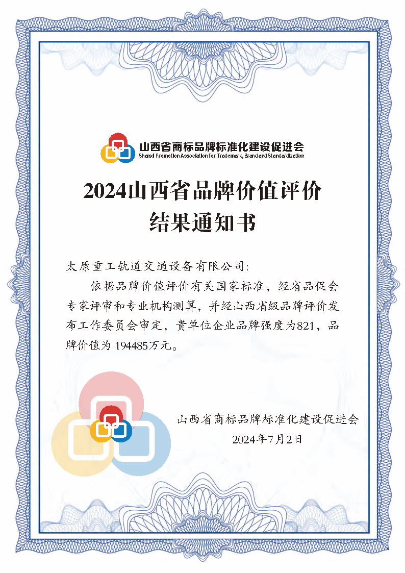 山西省品牌價(jià)值評價(jià)信息發(fā)布 太重軌道公司成功上榜