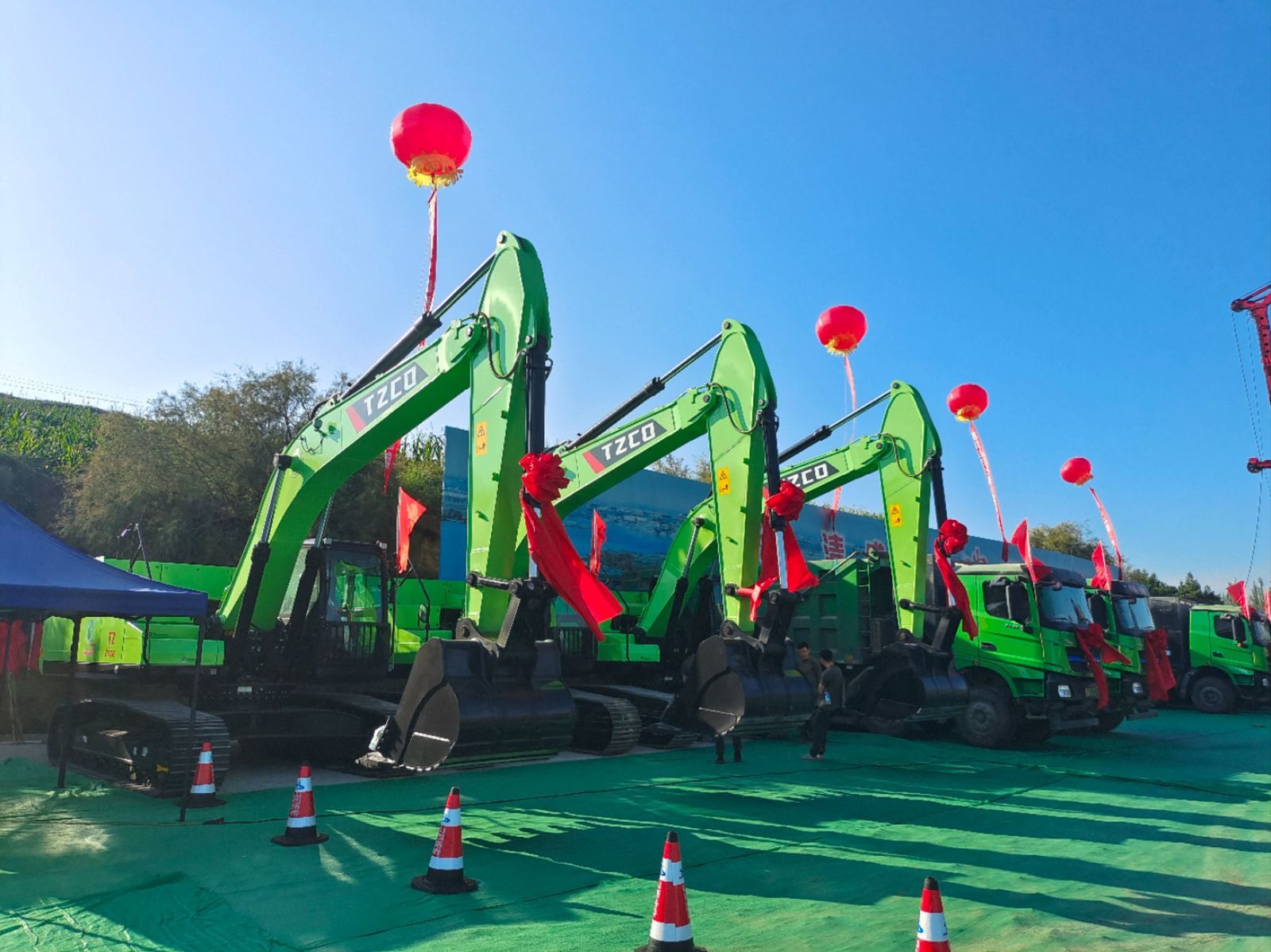 清風(fēng)送爽,丹桂飄香。近日,在山西忻州省道新建工程項(xiàng)目開工儀式現(xiàn)場(chǎng),多臺(tái)太重電動(dòng)液壓挖掘機(jī)TZ270E整齊列隊(duì)、蓄勢(shì)待發(fā)?,F(xiàn)場(chǎng)燈籠高掛、條幅飄揚(yáng),一片喜慶的中國紅中,幾抹清新的“太重綠”點(diǎn)綴其間,在藍(lán)天白云的映襯下顯得格外亮眼。