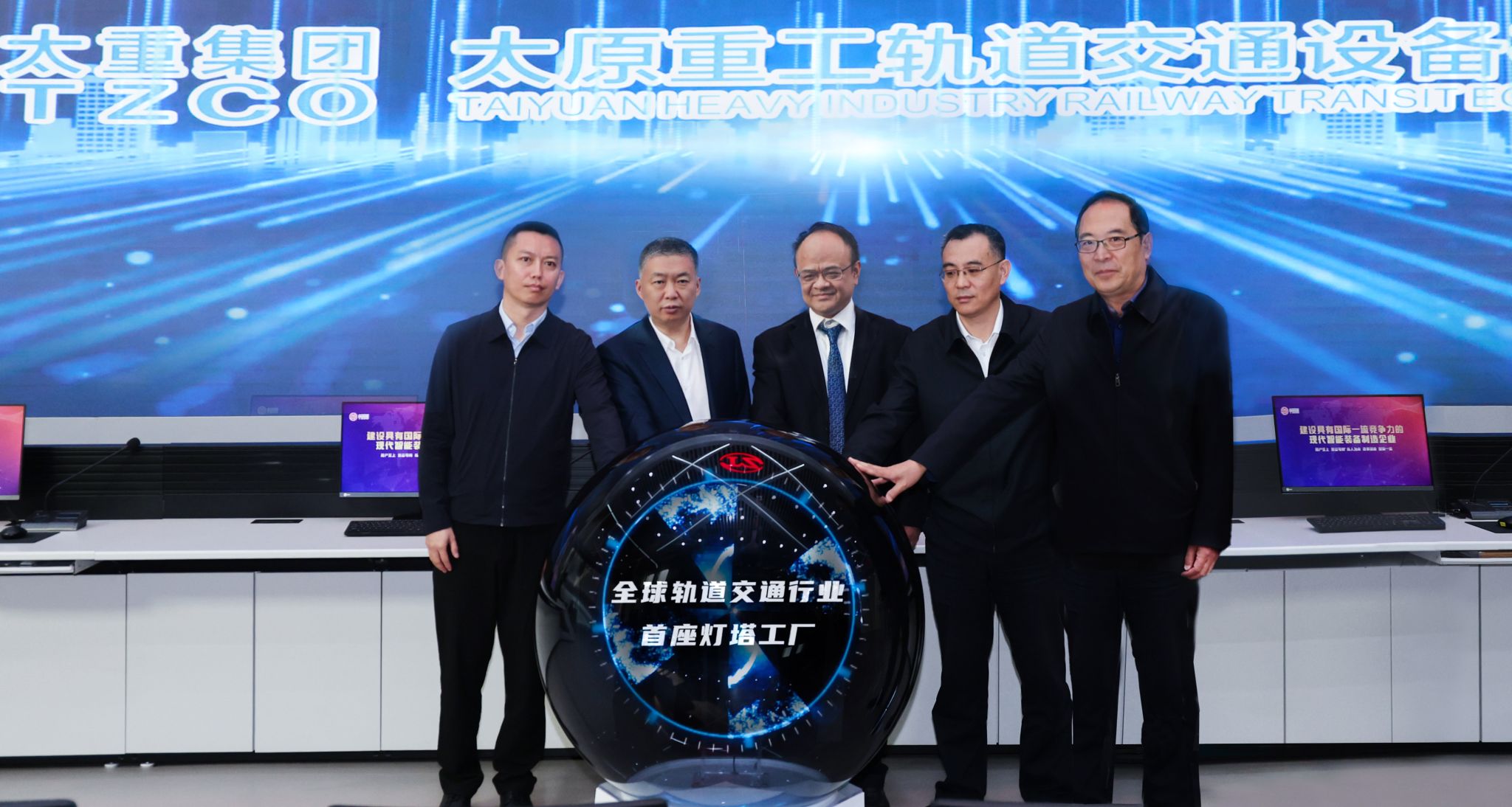 領(lǐng)導(dǎo)嘉賓共同按下啟動鍵,大屏幕華麗展開,燈塔點亮,“全球軌道交通行業(yè)首座燈塔工廠”字樣驚艷亮相、振奮人心。