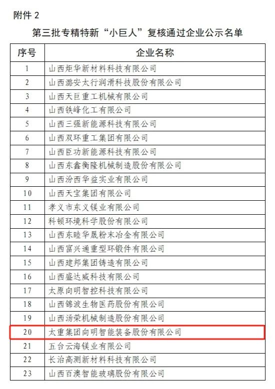 太原重工軌道交通設(shè)備有限公司成功入選第六批專精特新“小巨人”企業(yè),這是軌道公司繼2022年入選山西省專精特新企業(yè)后,完成的又一次榮譽進階。如果說“燈塔工廠”是行業(yè)標桿引領(lǐng),那這份來自國家級的認可同樣分量十足。此外,在此次的名單中,太重集團向明智能裝備股份有限公司順利通過第三批專精特新“小巨人”企業(yè)復核。
