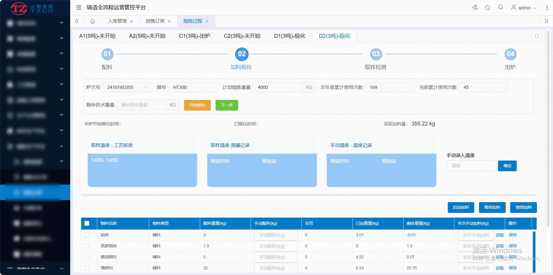 圖為熔煉過(guò)程生產(chǎn)操作界面