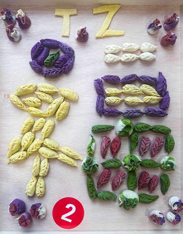 比賽現(xiàn)場(chǎng),職工們擼起袖子,干勁十足。他們搟皮拌餡,左手拱起餃子皮,右手用筷子夾起餡料往里一放,十指翻飛間,一個(gè)餃子已躍然眼前。大家各顯神通,用富有創(chuàng)意的拼色、造型將餃子裝扮得五彩斑斕,呈現(xiàn)出各式各樣的可愛模樣,整個(gè)賽場(chǎng)暖意融融、歡聲笑語。
