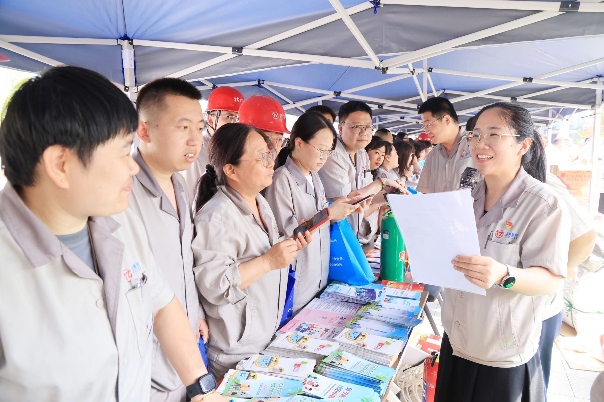 活動中,健康安全環(huán)保部、武裝保衛(wèi)部、工會、能源中心等多部門搭建咨詢臺,現(xiàn)場發(fā)放主題宣傳材料,針對職工關(guān)心的各類安全問題進行了耐心細致的解答。在聯(lián)合綜改區(qū)燃氣公司設置的專業(yè)展位,通過實物展示與專業(yè)講解相結(jié)合的方式,向現(xiàn)場人員普及正壓式空氣呼吸器、氧含量檢測儀等關(guān)鍵應急裝備的性能與操作要點。同時,專業(yè)人員還現(xiàn)場講解了消防器材使用規(guī)范以及燃氣、用電安全等貼近生活的實用知識。同步開展的安全知識有獎問答環(huán)節(jié),氣氛熱烈,小風扇、清涼油等豐富實用的獎品激發(fā)了廣大職工的參與熱情,讓大家在輕松愉快的氛圍中鞏固了安全知識。