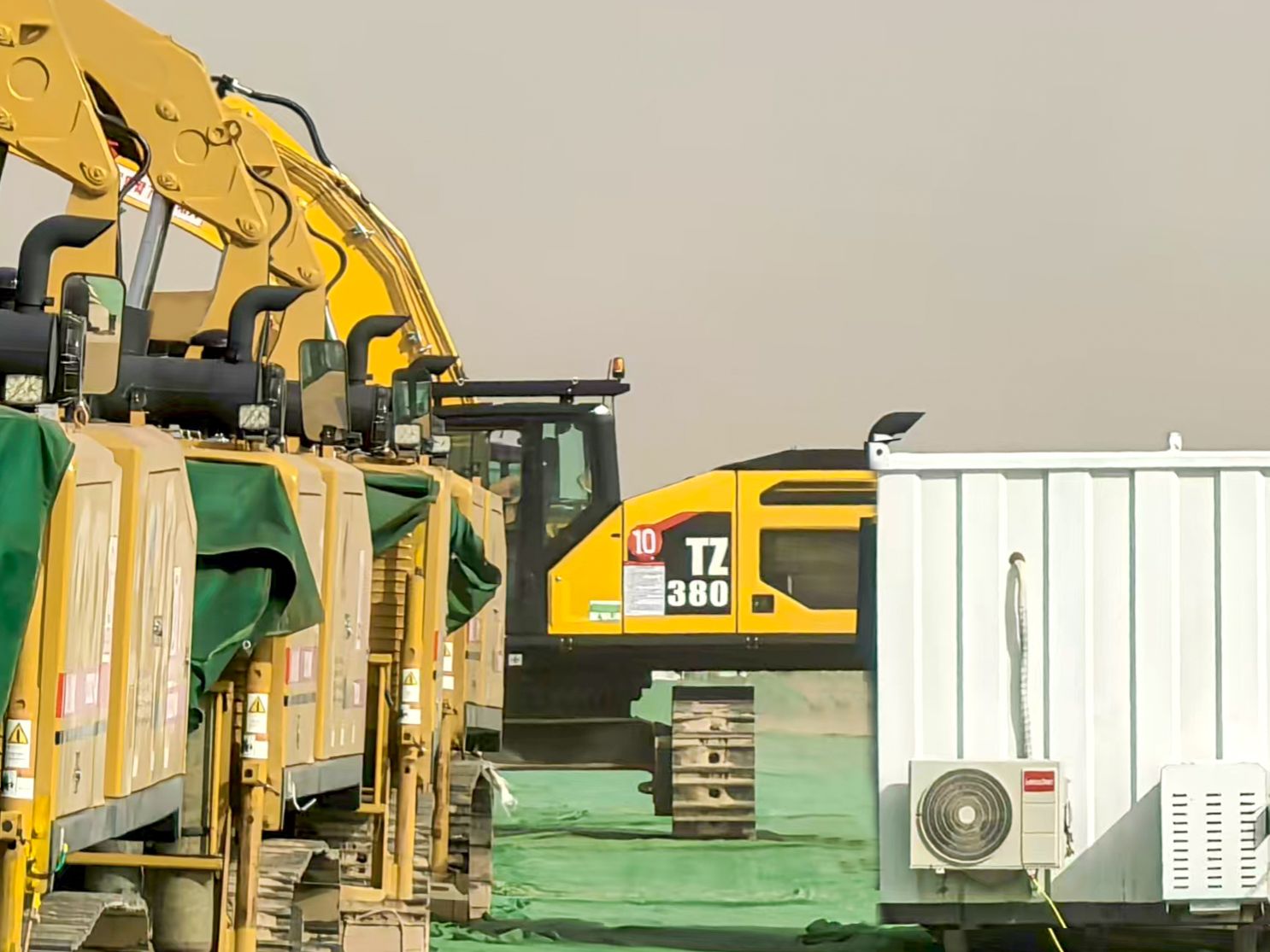數(shù)臺TZ380液壓挖掘機矗立其間
