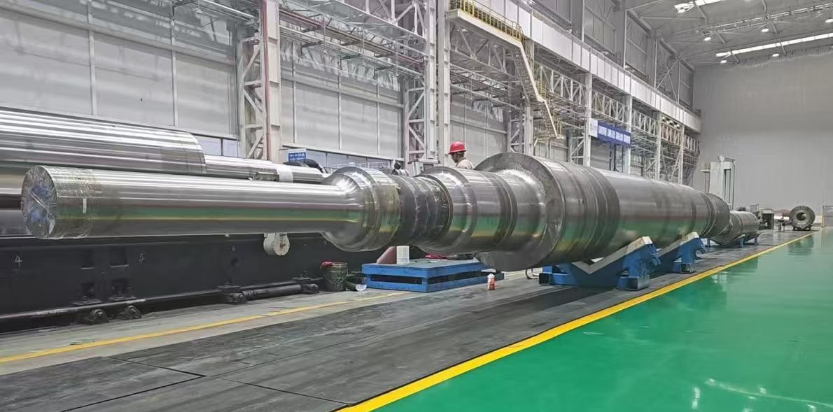 這類轉(zhuǎn)子屬于細長軸類鍛件,截面變化大,長徑比超過12,在熱處理中極易出現(xiàn)變形。為解決這一行業(yè)公認(rèn)難題,設(shè)備團隊對熱處理設(shè)備進行“量身改造”,突破設(shè)備極限長度,確保超長轉(zhuǎn)子在熱處理過程中受熱均勻、變形可控;技術(shù)團隊則如同“工藝雕塑家”,在以往經(jīng)驗的基礎(chǔ)上,系統(tǒng)梳理出一套專為發(fā)電機轉(zhuǎn)子定制的制造工藝體系,精準(zhǔn)攻克了材料均勻性、熱處理變形控制、磁性達標(biāo)、精度保持等一系列難關(guān),尤其是在無損檢測環(huán)節(jié),實現(xiàn)了“火眼金睛”般的精準(zhǔn)探傷,為產(chǎn)品的可靠性筑起最后一道堅實防線。最終,在團隊的緊密協(xié)作下,首支轉(zhuǎn)子試制成功,各項性能指標(biāo)均滿足設(shè)計要求。