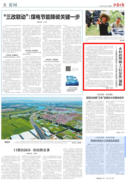 今日山西日報以《鄉(xiāng)村治理插上“信息化”翅膀》為題,報道了太重集團積極履行國有企業(yè)社會責任,依托企業(yè)管理經(jīng)驗,將網(wǎng)格化服務管理工作“精細化、信息化、智能化”,助力基層治理能力高效提升,讓鄉(xiāng)村治理,因企業(yè)信息化手段賦能變得高效。