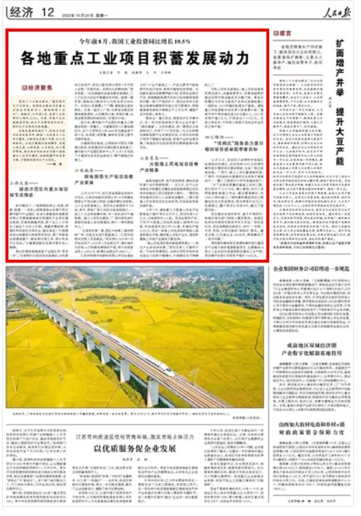 今日,人民日?qǐng)?bào)在重要版面《各地重點(diǎn)工業(yè)項(xiàng)目積蓄發(fā)展動(dòng)力》報(bào)道中,重點(diǎn)關(guān)注太重新園區(qū)設(shè)備安裝及建設(shè)進(jìn)展情況,給集團(tuán)公司廣大干部職工和新園區(qū)的建設(shè)者們帶來了極大地鼓舞。