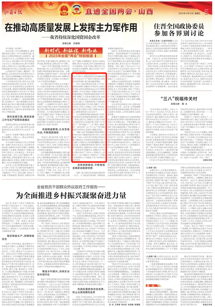 今日,山西日報(bào)【新時(shí)代 新征程 新偉業(yè)——2023年全國兩會(huì)特別報(bào)道】專欄,刊發(fā)了《在推動(dòng)高質(zhì)量發(fā)展上發(fā)揮主力軍作用 ——我省持續(xù)深化國資國企改革》文章,深入報(bào)道了太重集團(tuán)在推動(dòng)我省高質(zhì)量發(fā)展中的突出成效 。近年來,太重集團(tuán)苦練內(nèi)功、提質(zhì)增效,扎實(shí)推進(jìn)國企改革,在智能制造、創(chuàng)新驅(qū)動(dòng)、人才體制機(jī)制改革等方面亮點(diǎn)頻出、成效顯著,成為推動(dòng)全省高質(zhì)量發(fā)展的重要力量。