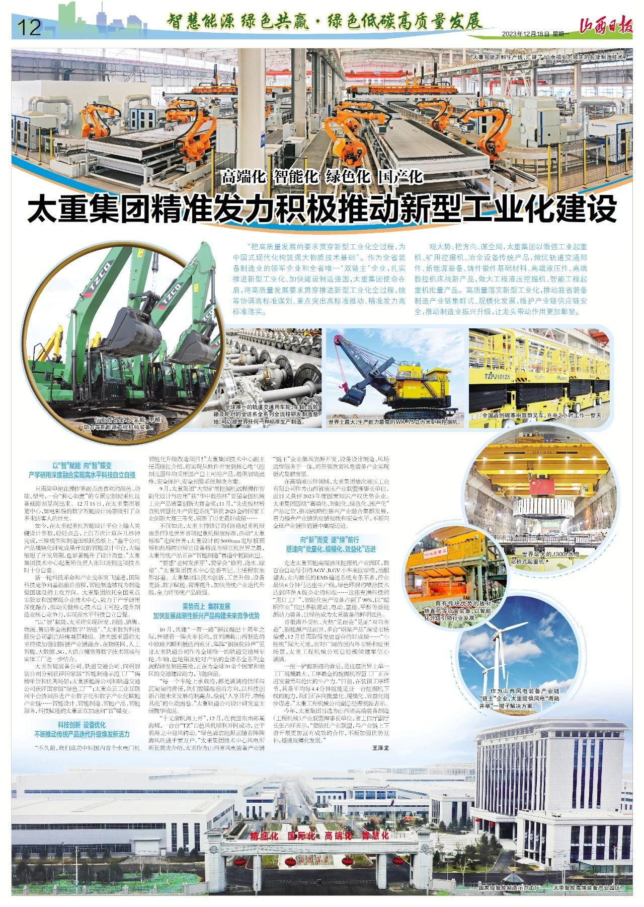 今日,山西日?qǐng)?bào)整版刊發(fā)《高端化 智能化 綠色化 國(guó)產(chǎn)化 太重集團(tuán)精準(zhǔn)發(fā)力積極推動(dòng)新型工業(yè)化建設(shè)》文章,從產(chǎn)學(xué)研用深度融合、傳統(tǒng)產(chǎn)品迭代升級(jí)、加快發(fā)展戰(zhàn)略性新興產(chǎn)品、打造綠色批量裝備等方面,詳細(xì)報(bào)道太重高質(zhì)量落實(shí)新型工業(yè)化的生動(dòng)實(shí)踐,講述公司作為全省唯一“雙鏈主”企業(yè),持續(xù)推動(dòng)我省裝備制造產(chǎn)業(yè)鏈集群式、規(guī)?;l(fā)展的務(wù)實(shí)之舉。