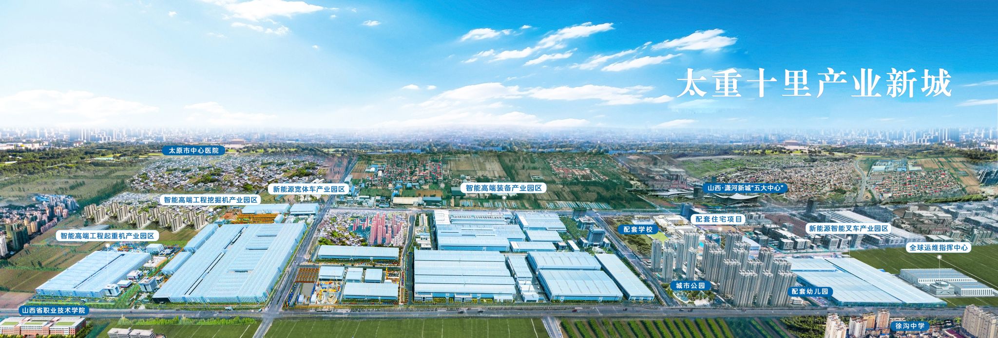 山西轉(zhuǎn)型綜改示范區(qū)瀟河產(chǎn)業(yè)園區(qū)內(nèi),“太重十里產(chǎn)業(yè)新城”拔地而起,從東向西眺望,新能源智能叉車產(chǎn)業(yè)園區(qū)、配套住宅項(xiàng)目、智能高端裝備產(chǎn)業(yè)園區(qū)、智能高端工程挖掘機(jī)產(chǎn)業(yè)園區(qū)、智能高端工程起重機(jī)產(chǎn)業(yè)園區(qū)連綿十里,宛如畫卷。